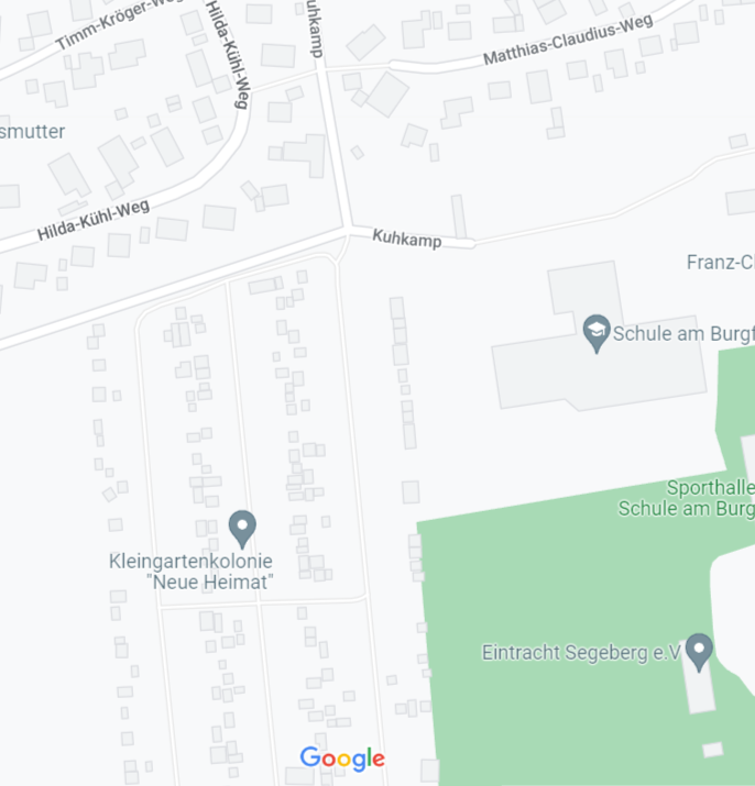 Unsere Kolonie liegt in Bad Segeberg am Ende des Kuhkamps kurz vor der Schule am Burgfeld.